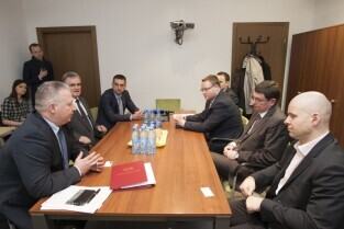 Podpisanie porozumienia pomiędzy Stocznią Gdańską, Miastem Gdańsk i Gdańską Agencją Rozwoju Gospodarczego w sprawie współpracy przy komercjalizacji terenów Stoczni Gdańskiej SA. Gdańsk, Urząd Miejski. Nz. od lewej: Przewodniczący Rady Miasta Gdańska Bogdan Oleszek, Przewodniczący Rady Nadzorczej Stoczni Gdańskiej Jarosław Łasiński, Z-ca Prezydenta Gdańska Andrzej Bojanowski, Prezes ISD Polska Kostiantyn Litwinow, Wiceprezes Stoczni Gdańskiej Adam Zaczeniuk, Prezes Gdańskiej Agencji Rozwoju Gospodarczego Alan Aleksandrowicz, Dyrektor Departamentu Restrukturyzacji i Rozwoju Stoczni Gdańsk SA Maciej Mierzwiński