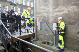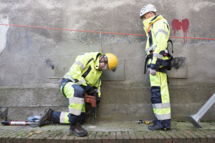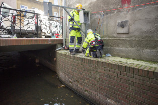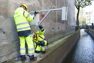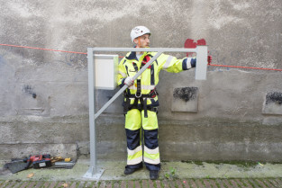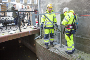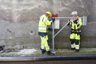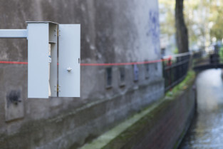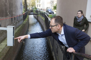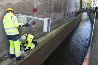 Montaż urządzenia do pomiaru poziomu wody na Potoku Strzyża. Gdańsk Wrzeszcz, ul. Aldony.