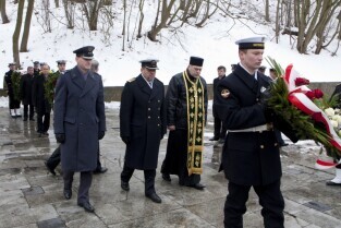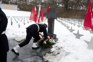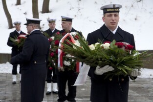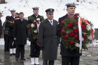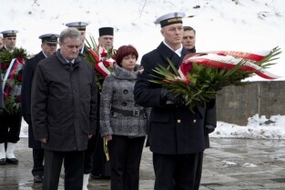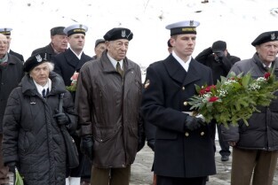 68. rocznica "Powrotu Gdańska do Macierzy" z udziałem kombatantów, więźniów obozów koncentracyjnych, władz samorządowych i wojewódzkich. Gdańsk, Cmentarz Wojenny Żołnierzy Radzieckich przy Placu Zebrań Ludowych