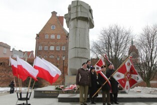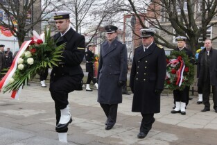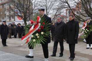Obchody 68 Rocznicy Powrotu Gdańska do Macierzy. Składanie wieńców pod pomnikiem "Tym Co Za Polskość Gdańska".