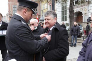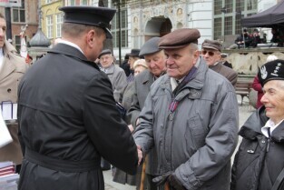 Obchody 68 Rocznicy Powrotu Gdańska do Macierzy. Długi Targu, wręczenie kombatantom Medali Pro Patria oraz Medali Pro Memoria.