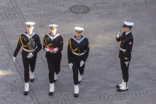 Gdańsk. Powrót Gdańska w granice Polski. 80. rocznica podniesienia flagi państwowej RP na Dworze Artusa.