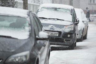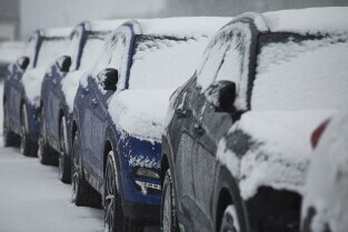 Gdańsk. Auta w porcie. Powrót zimy pod koniec marca