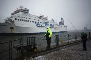 Gdańsk. Prom Wawel wpływa do portu w Gdańsku. Powrót zimy pod koniec marca