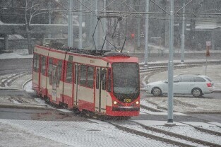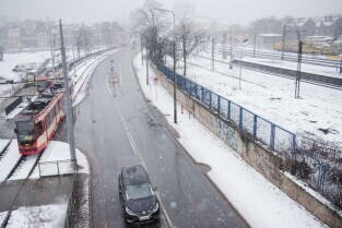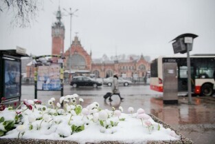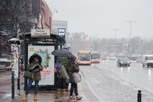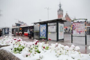Gdańsk Letnica, przystanek tramwajowy Stadion. Powrót zimy pod koniec marca.