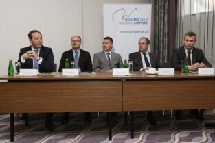 Podpisanie umowy pomiędzy Hilton Worldwide, spółką Port Hotel oraz Portem Lotniczym Gdańsk na dzierżawę przylotniskowego terenu, na którym zostanie wybudowany hotel sieci Hampton Hilton. Nz. od prawej: Prezes Port-Hotel Sp. z o.o. Mirosław Moczarski, Prezes Development Hilton Worldwide Urlich Widmer, Prezes Portu Lotniczego Gdańsk Tomasz Kloskowski, Prezydent Gdańska Paweł Adamowicz, Marszałek Woj. Pomorskiego Mieczysław Struk