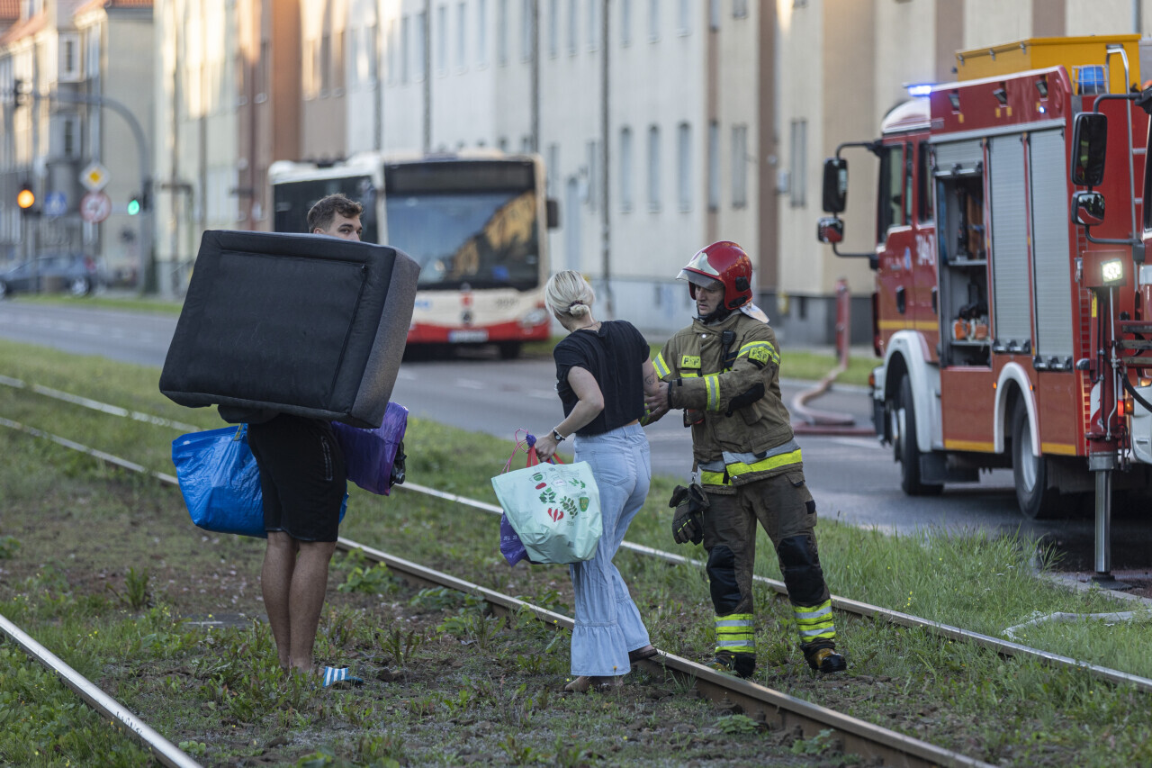 Gdańsk. 11 zastępów straży pożarnej dogaszalo zgliszcza po pożarze poddasza w kamienicy przy Al. gen. Józefa Hallera. Do tragedii doszło nad ranem, kiedy większość mieszkańców jeszcze spała. w pożarze zginęła jedna osoba