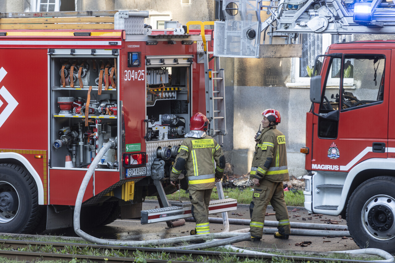 Gdańsk. 11 zastępów straży pożarnej dogaszalo zgliszcza po pożarze poddasza w kamienicy przy Al. gen. Józefa Hallera. Do tragedii doszło nad ranem, kiedy większość mieszkańców jeszcze spała. w pożarze zginęła jedna osoba