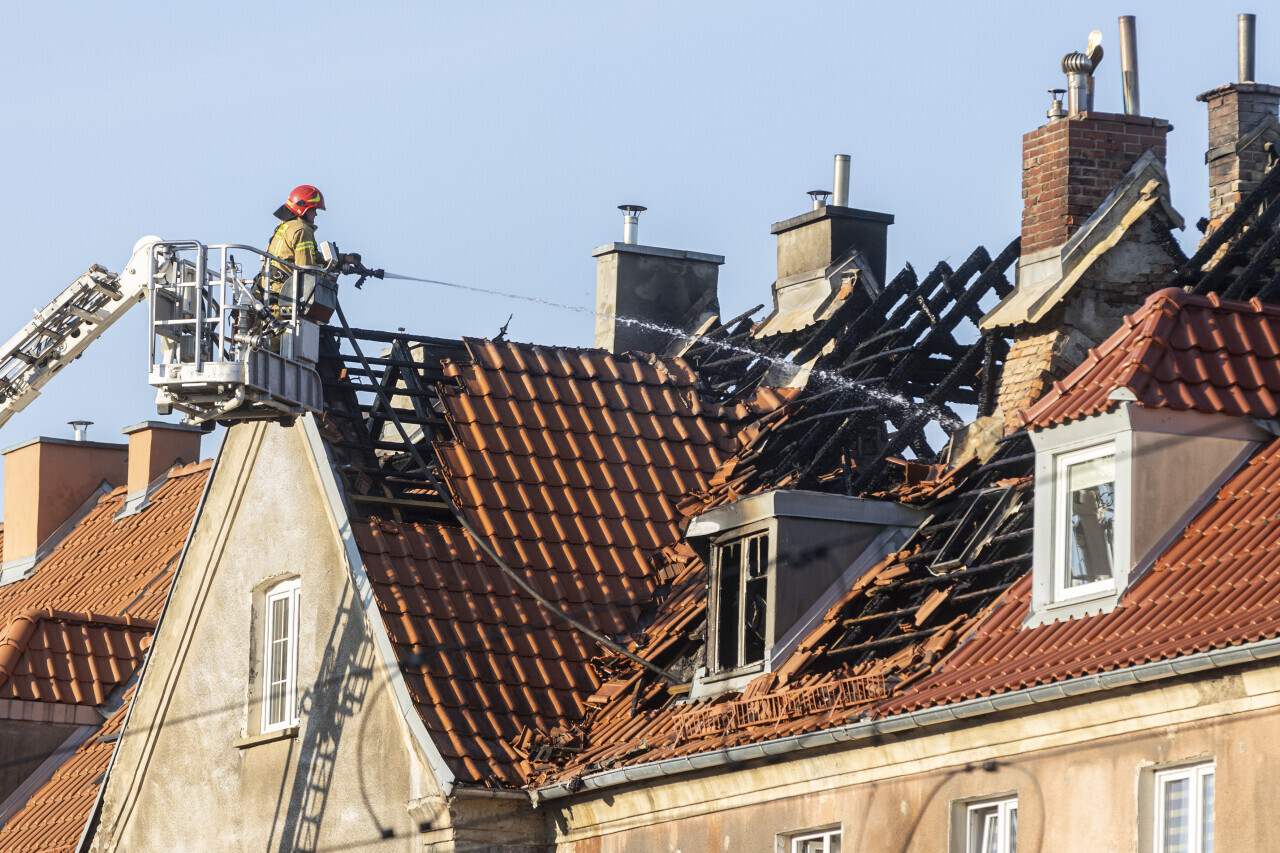 Gdańsk. 11 zastępów straży pożarnej dogaszalo zgliszcza po pożarze poddasza w kamienicy przy Al. gen. Józefa Hallera. Do tragedii doszło nad ranem, kiedy większość mieszkańców jeszcze spała. w pożarze zginęła jedna osoba