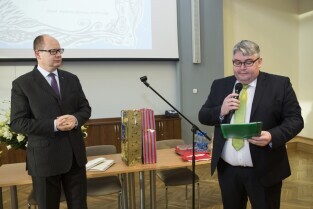 Urząd Miejski w Gdańsku. Pożegnanie Zastępcy Prezydenta Gdańska ds. polityki społecznej Ewy Kamińskiej (po lewej) oraz powołanie na to stanowisko Piotra Kowalczuka (po prawej), dotychczasowego Dyrektora Wydziału Rozwoju Społecznego UMG