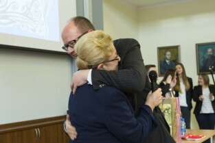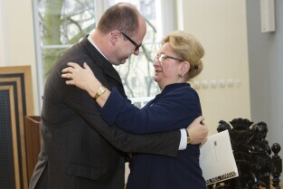 Urząd Miejski w Gdańsku. Pożegnanie Zastępcy Prezydenta Gdańska ds. polityki społecznej Ewy Kamińskiej oraz powołanie na to stanowisko Piotra Kowalczuka, dotychczasowego Dyrektora Wydziału Rozwoju Społecznego UMG. Nz. Prezydent Gdańska Paweł Adamowicz i Ewa Kamińska