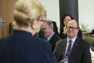 Urząd Miejski w Gdańsku. Pożegnanie Zastępcy Prezydenta Gdańska ds. polityki społecznej Ewy Kamińskiej oraz powołanie na to stanowisko Piotra Kowalczuka, dotychczasowego Dyrektora Wydziału Rozwoju Społecznego UMG. Nz. Ewa Kamińska i Z-ca Prezydenta Gdańska Maciej Lisicki