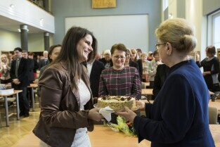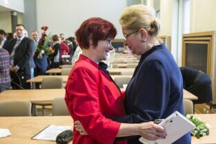 Urząd Miejski w Gdańsku. Pożegnanie Zastępcy Prezydenta Gdańska ds. polityki społecznej Ewy Kamińskiej oraz powołanie na to stanowisko Piotra Kowalczuka, dotychczasowego Dyrektora Wydziału Rozwoju Społecznego UMG. Nz. Ewa Kamińska i Dyrektor Kancelarii Prezydenta Helena Chmielowiec