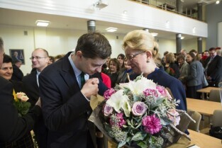 Urząd Miejski w Gdańsku. Pożegnanie Zastępcy Prezydenta Gdańska ds. polityki społecznej Ewy Kamińskiej oraz powołanie na to stanowisko Piotra Kowalczuka, dotychczasowego Dyrektora Wydziału Rozwoju Społecznego UMG. Nz. Prezydent Gdańska Paweł Adamowicz