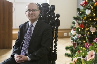 Urząd Miejski w Gdańsku. Pożegnanie Zastępcy Prezydenta Gdańska ds. polityki komunalnej Macieja Lisickiego (po lewej) oraz powołanie na to stanowisko Piotra Grzelaka (po prawej)