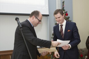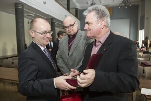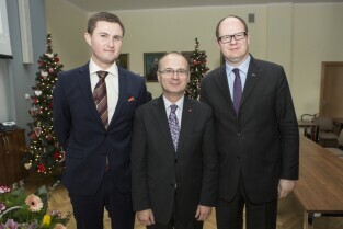 Urząd Miejski w Gdańsku. Pożegnanie Zastępcy Prezydenta Gdańska ds. polityki komunalnej Macieja Lisickiego oraz powołanie na to stanowisko Piotra Grzelaka. Nz. Maciej Lisicki i Przewodniczący Rady Miasta Gdańska Bogdan Oleszek; po środku Radny Miasta Gdańska Grzegorz Strzelczyk