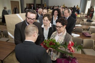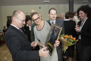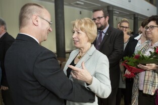 Urząd Miejski w Gdańsku. Pożegnanie Zastępcy Prezydenta Gdańska ds. polityki komunalnej Macieja Lisickiego oraz powołanie na to stanowisko Piotra Grzelaka. Nz. Maciej Lisicki i Skarbnik Miasta Gdańska Teresa Blacharska