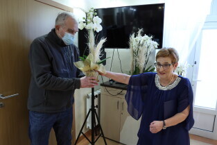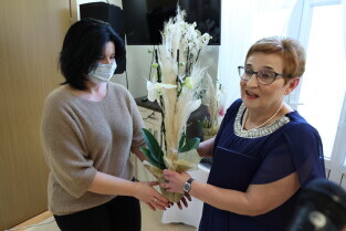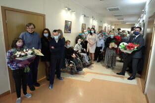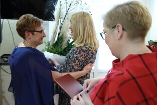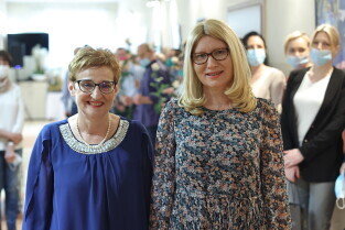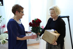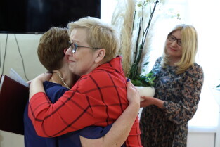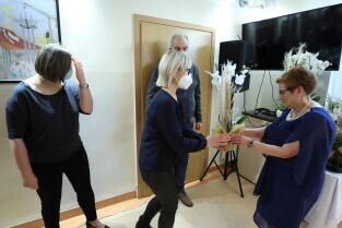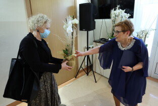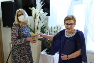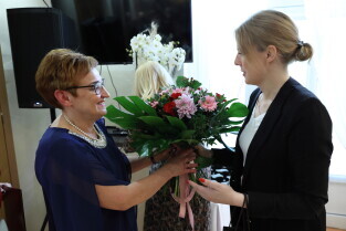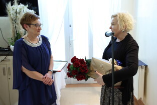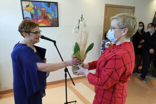 Gdańsk.Pożegnanie wieloletniej dyr. DPS Orunia Barbary Witerskiej. Nz. Po. Dyr. Joanna Wąsowicz.