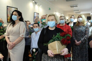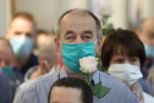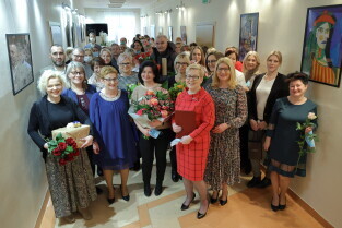 Gdańsk.Pożegnanie wieloletniej dyr. DPS Orunia Barbary Witerskiej. Nz. Dyr. Barbara Witerska.