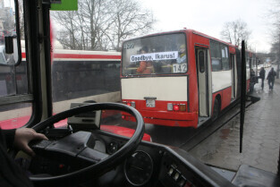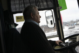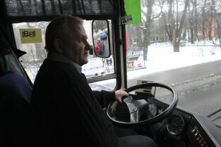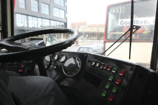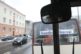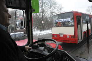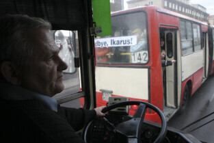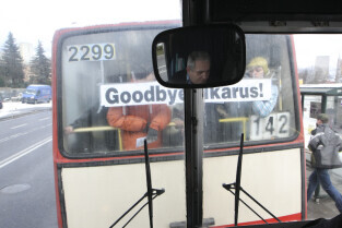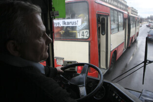 Ostatni kurs autobusu Ikarus w Gdańsku, który odbył się na trasie linii 142. Nz. kierowca Jaroslaw Zurowski