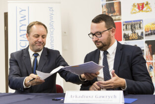 Gdańsk ul. Świętokrzyska, Publiczne Pozytywne Przedszkole nr 4. Inauguracja projektu "Pozytywne Przedszkola Pomorza" połączona z otwarciem tej placówki. Nz. od lewej: Prezes Fundacji Pozytywne Inicjatywy Arkadiusz Gawrych, Z-ca Prezydenta Gdańska Piotr Kowalczuk