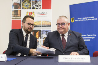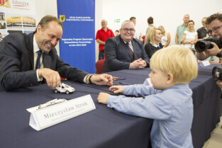 Gdańsk ul. Świętokrzyska, Publiczne Pozytywne Przedszkole nr 4. Inauguracja projektu "Pozytywne Przedszkola Pomorza" połączona z otwarciem tej placówki. Nz. od lewej: Marszałek Woj. Pomorskiego Mieczysław Struk i Prezes Fundacji Pozytywne Inicjatywy Arkadiusz Gawrych