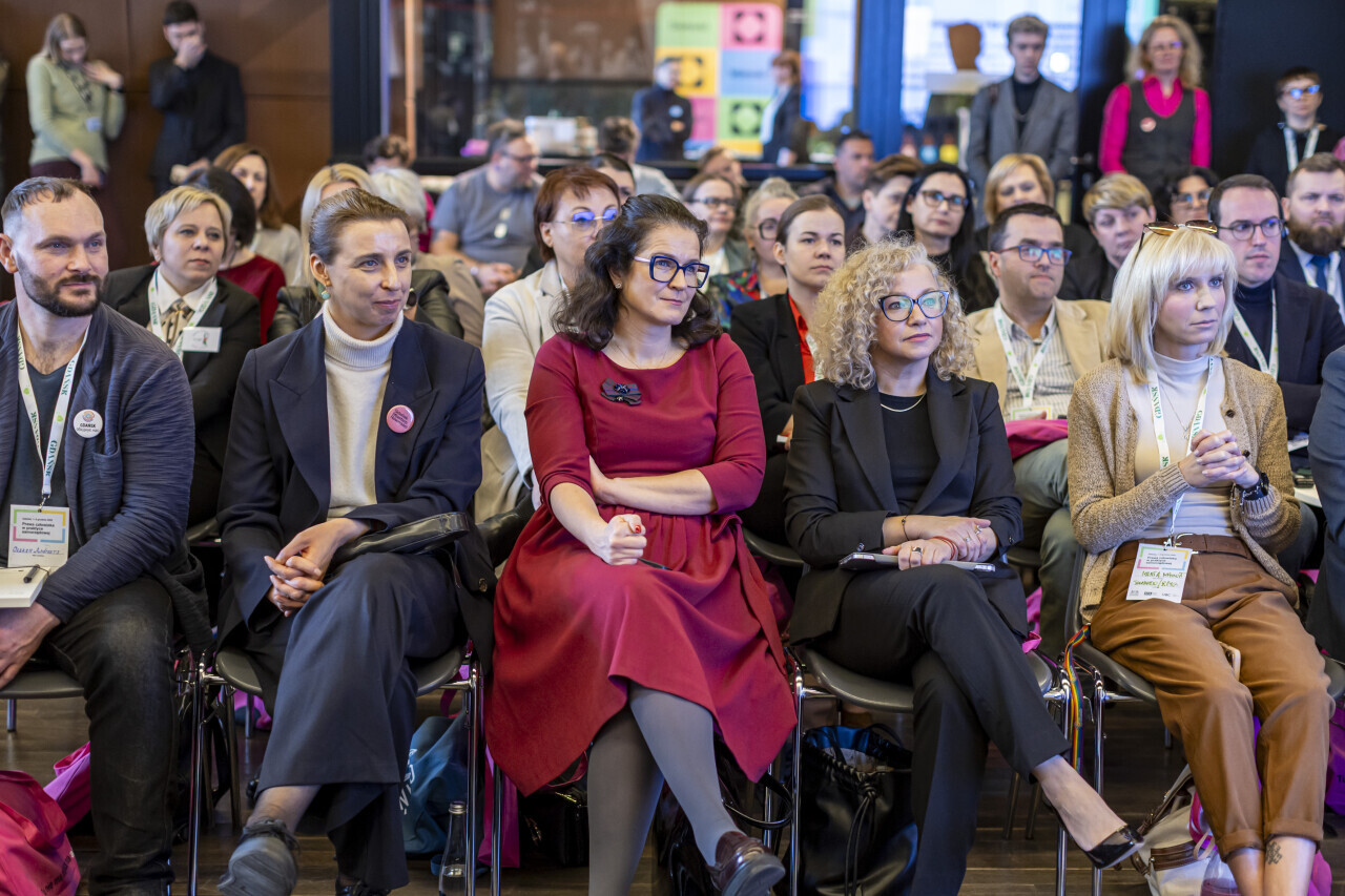 Gdańsk. Minister Katarzyna Kotula, Prezydent Aleksandra Dulkiewicz oraz jej zastępczyni Monika Chabior, radne Marta Magott i Żaneta Geryk, a także Dyrektor ECS'u Basil Kerski wzięli udział w odbywającej się w Europejskim Centrum Solidarności konferencji pod hasłem "Prawa człowieka w praktyce Samorządowej"