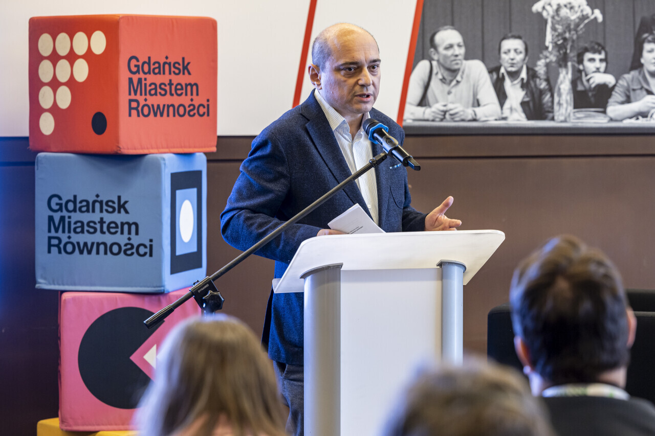 Gdańsk. Minister Katarzyna Kotula, Prezydent Aleksandra Dulkiewicz oraz jej zastępczyni Monika Chabior, radne Marta Magott i Żaneta Geryk, a także Dyrektor ECS'u Basil Kerski wzięli udział w odbywającej się w Europejskim Centrum Solidarności konferencji pod hasłem "Prawa człowieka w praktyce Samorządowej"