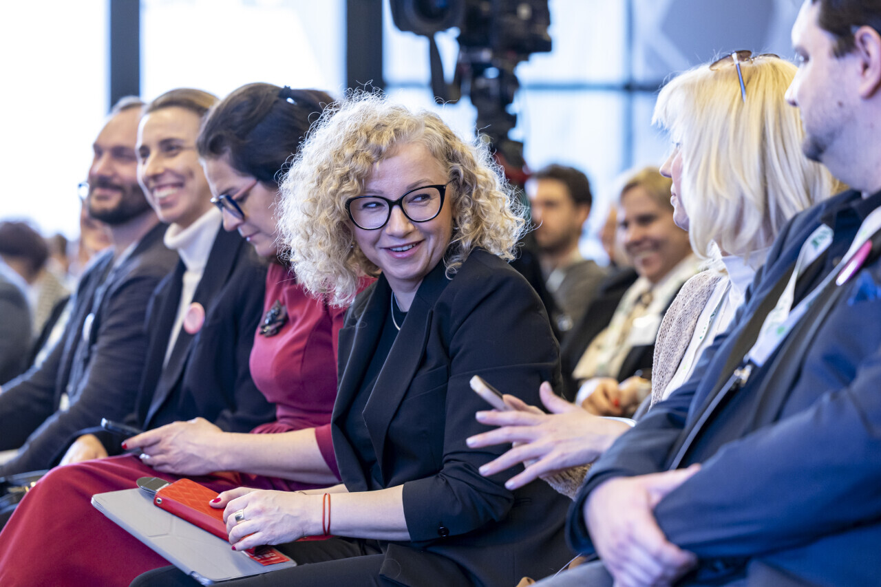 Gdańsk. Minister Katarzyna Kotula, Prezydent Aleksandra Dulkiewicz oraz jej zastępczyni Monika Chabior, radne Marta Magott i Żaneta Geryk, a także Dyrektor ECS'u Basil Kerski wzięli udział w odbywającej się w Europejskim Centrum Solidarności konferencji pod hasłem "Prawa człowieka w praktyce Samorządowej"