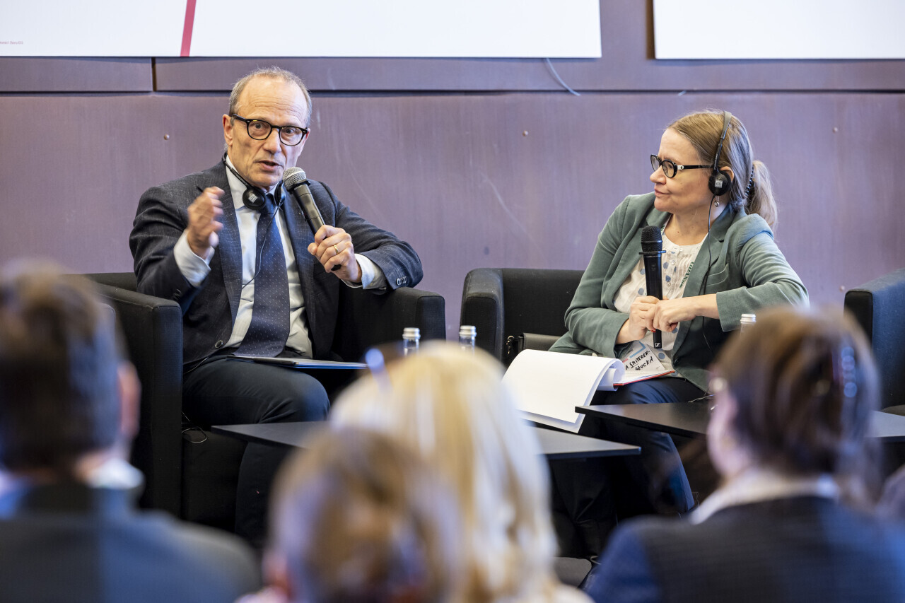 Gdańsk. Minister Katarzyna Kotula, Prezydent Aleksandra Dulkiewicz oraz jej zastępczyni Monika Chabior, radne Marta Magott i Żaneta Geryk, a także Dyrektor ECS'u Basil Kerski wzięli udział w odbywającej się w Europejskim Centrum Solidarności konferencji pod hasłem "Prawa człowieka w praktyce Samorządowej"