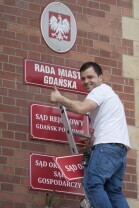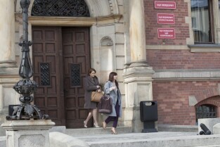 Plan zdjęciowy serialu "Prawo Agaty" emitowanego w telewizji TVN. Gdańsk, przed wejściem do Nowego Ratusza