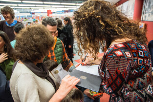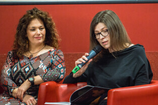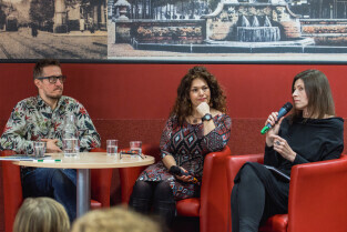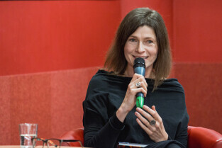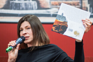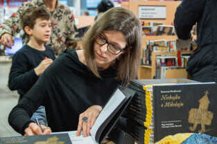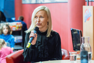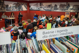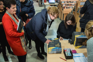 Gdańsk, Biblioteka Manhattan. Premiera książki - cegiełki o Bazylice św. Mikołaja “Niebajka o Mikołaju”. Nz. Katarzyna Wasilkowska