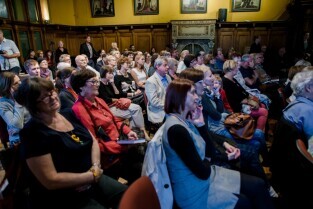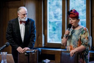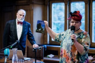 „Srebrzysko. Powieść dla dorosłych” to najnowsza książka Stefana Chwina. Nz. po lewej Małgorzata Chmiel, Posłanka na Sejm RP. Gdańsk, Nadbałtyckie Centrum Kultury