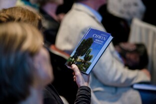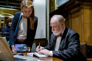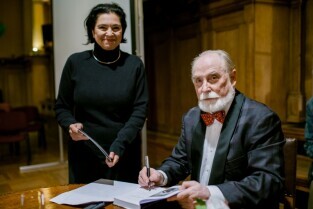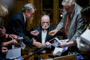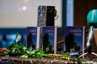 „Srebrzysko. Powieść dla dorosłych” to najnowsza książka Stefana Chwina. Nz. autor wpisuje dedykacje