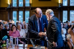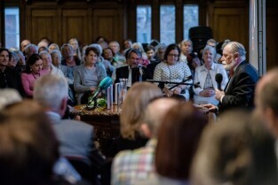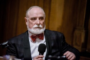 „Srebrzysko. Powieść dla dorosłych” to najnowsza książka Stefana Chwina. Nz. Prezydent Gdańska Paweł Adamowicz. Gdańsk, Nadbałtyckie Centrum Kultury