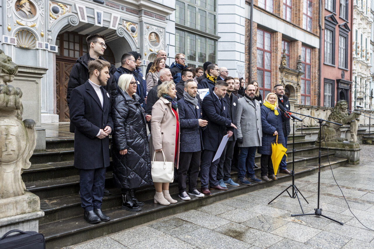 Gdańsk. Na przedprożu Dworu Artusa odbyła się prezentacja kandydatów w zbliżających się wyborach samorządowych z ramienia Komitetu Wspólna Gdańska Droga 2050.