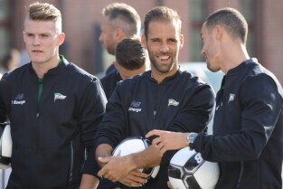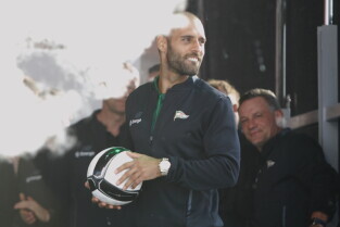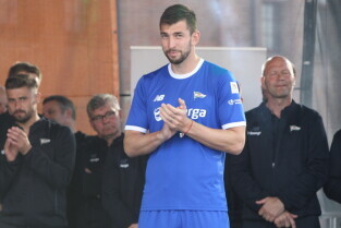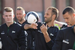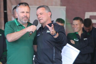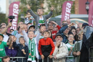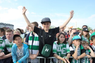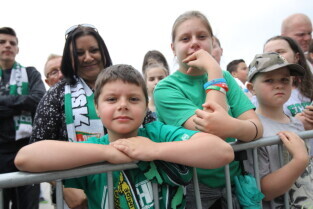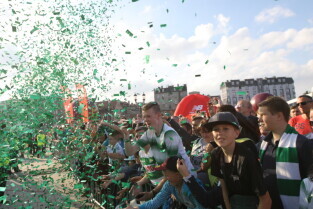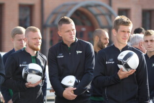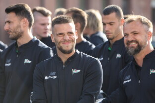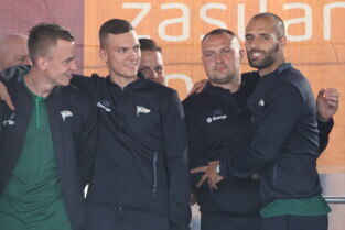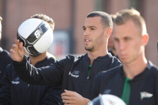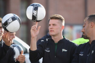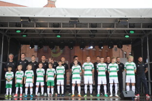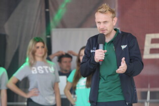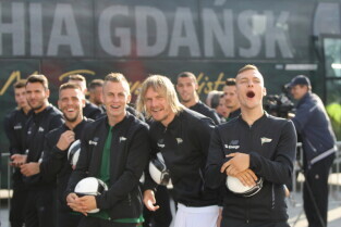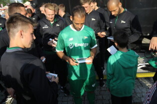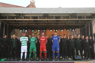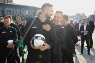 Gdańsk. Plac przy Filharmonii Bałtyckiej na Ołowiance. Prezentacja Lechii Gdańsk. Nz. Robert Kwiatek-Energa.