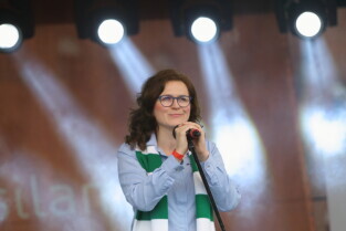 Gdańsk. Plac przy Filharmonii Bałtyckiej na Ołowiance. Prezentacja Lechii Gdańsk. Nz. Wiceprezydent Gdańska Aleksandra Dulkiewicz.