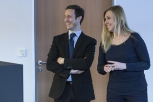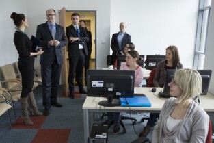 Gdańsk Park Naukowo Technologiczny. Prezentacja firm działających na terenie parku. Prezydent Gdańska Paweł Adamowicz i Dyrektor GPNT Izabela Disterheft odwiedzają uczestniczki szkolenia z zakresu testów automatycznych