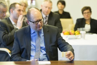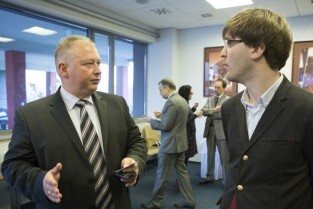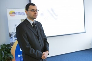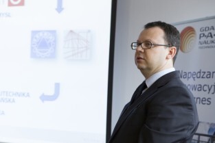 Gdańsk Park Naukowo Technologiczny. Prezentacja firm działających na terenie parku. Nz. Z-ca Prezydenta Gdańska Piotr Grzelak