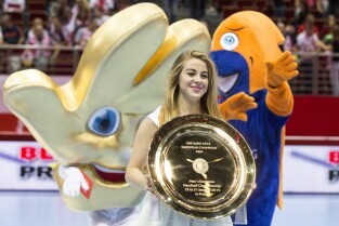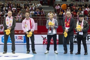 Prezentacja pucharu i Ambasadorów Mistrzostw Europy Piłkarzy Ręcznych 2016. Gdańsk, Sopot. Ergo Arena