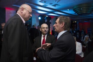 Warszawa, Hotel Marriott. Oficjalna prezentacja trasy 71. Wyścigu kolarskiego Tour de Pologne UCI World Tour. Wyścig rozpocznie się 3 sierpnia w Gdańsku. Nz. od lewej: Dyrektor Tour de Pologne Czesław Lang i były Prezydent RP Lech Wałęsa