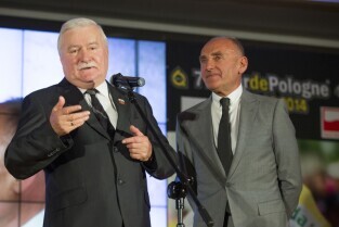 Warszawa, Hotel Marriott. Oficjalna prezentacja trasy 71. Wyścigu kolarskiego Tour de Pologne UCI World Tour. Wyścig rozpocznie się 3 sierpnia w Gdańsku. Nz. były Prezydent RP Lech Wałęsa i Dyrektor Tour de Pologne Czesław Lang