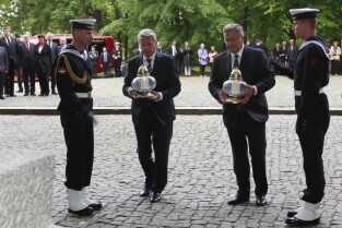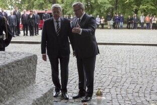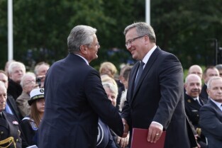 Prezydent RP Bronisław Komorowski i prezydent Niemiec Joachim Gauck wspólnie zapalili znicze na Cmentarzu Obrońców Westerplatte i złożyli kwiaty pod Pomnikiem Obrońców Wybrzeża.