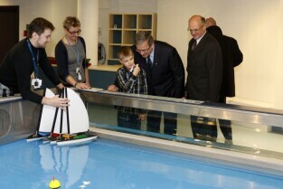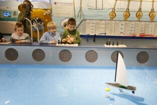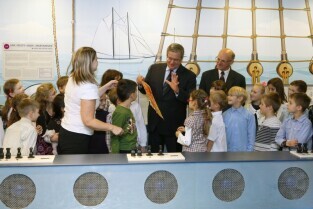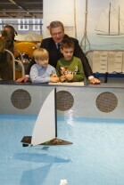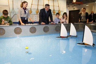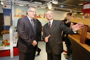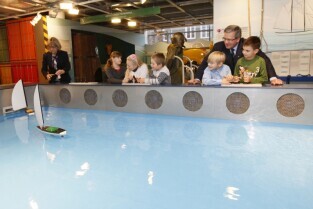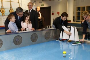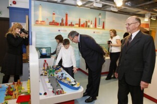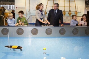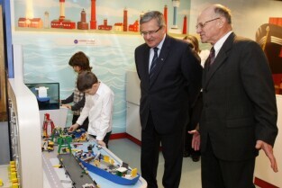 Wizyta Prezydenta RP Bronisława Komorowskiego w Ośrodku Kultury Morskiej prowadzonego przez Centralne Muzeum Morskie, gdzie m.in., razem z dziećmi, sterował modelami żaglówek.