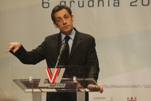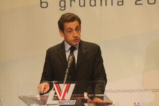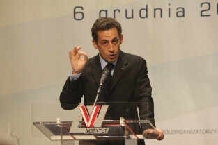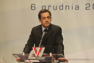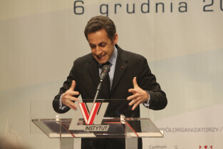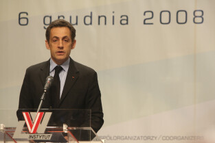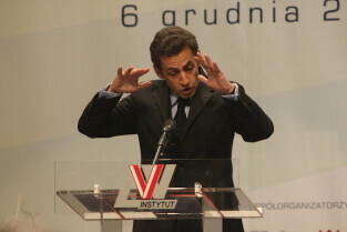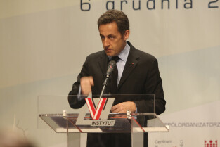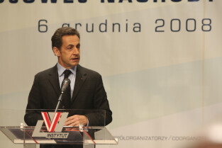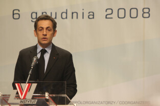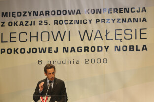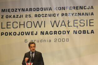 Konferencja Solidarność dla Przyszłości w ramach obchodów 25-lecia przyznania Lechowi Wałęsie Pokojowej Nagrody Nobla. Nz. Prezydent Gdańska Nicolas Sarkozy