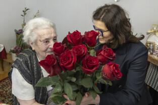 Prezydent Gdańska Aleksandra Dulkiewicz odwiedziła 100-latkę Panią Leokadie Korczak