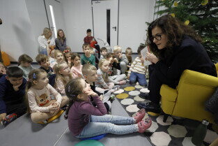 Gdańsk. Prezydent Gdańska Aleksandra Dulkiewicz przeczytała bajki dzieciom z przedszkola Bursztynowy Kompas.