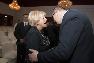 Prezydent Gdańska Paweł Adamowicz otrzymał tytuł "Człowieka Roku 2012" w konkursie organizowanym przez Dziennik Bałtycki. Sopot, Grand Hotel. Nz. gratulacje składa Dyrektor Kancelarii Helena Chmielowiec