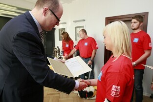 Pięcioro ratowników wodnych, którzy w tym sezonie skutecznie ratowali ludzkie życie na gdańskich plażach, spotkało się dziś z prezydentem Gdańska Pawłem Adamowiczem.